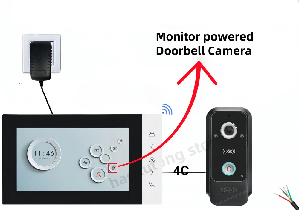 4. Power adapter: The outdoor doorbell and the indoor monitor share a 15V 1.2A power adapter