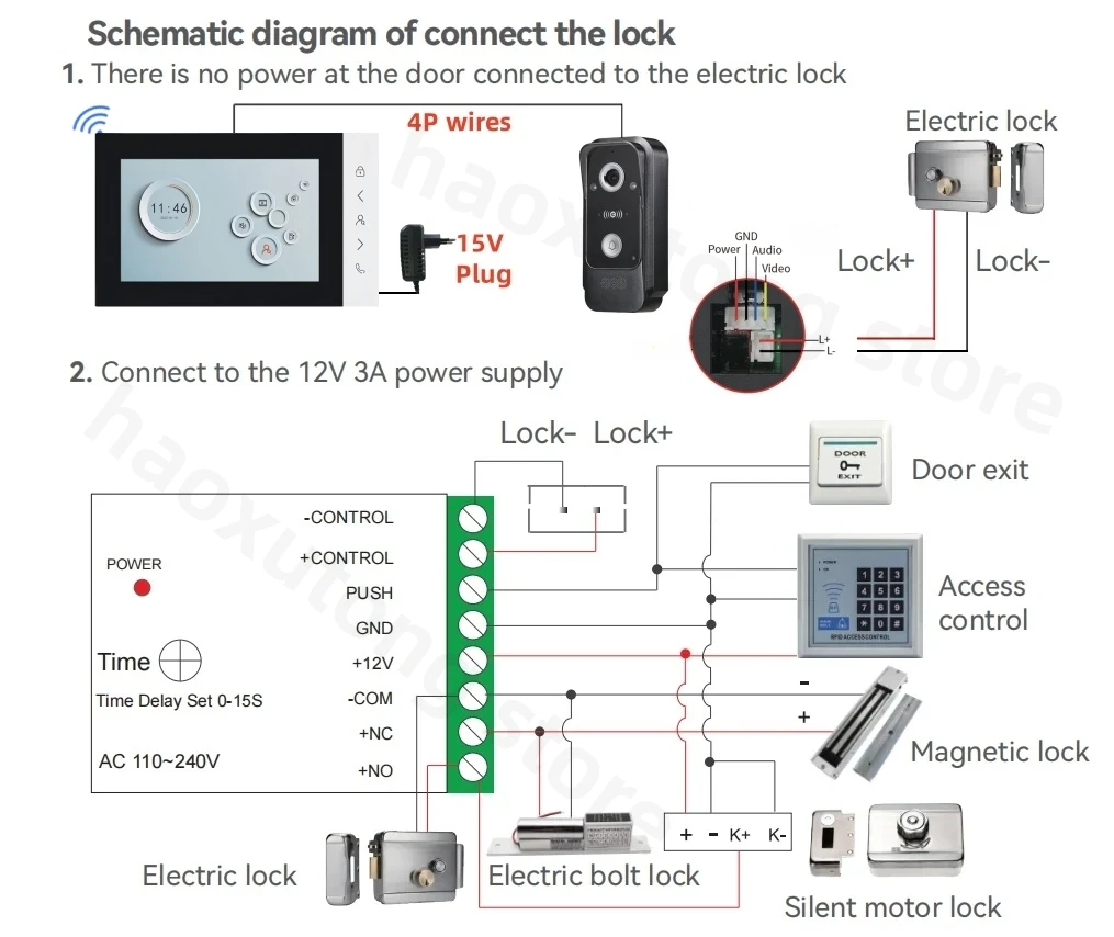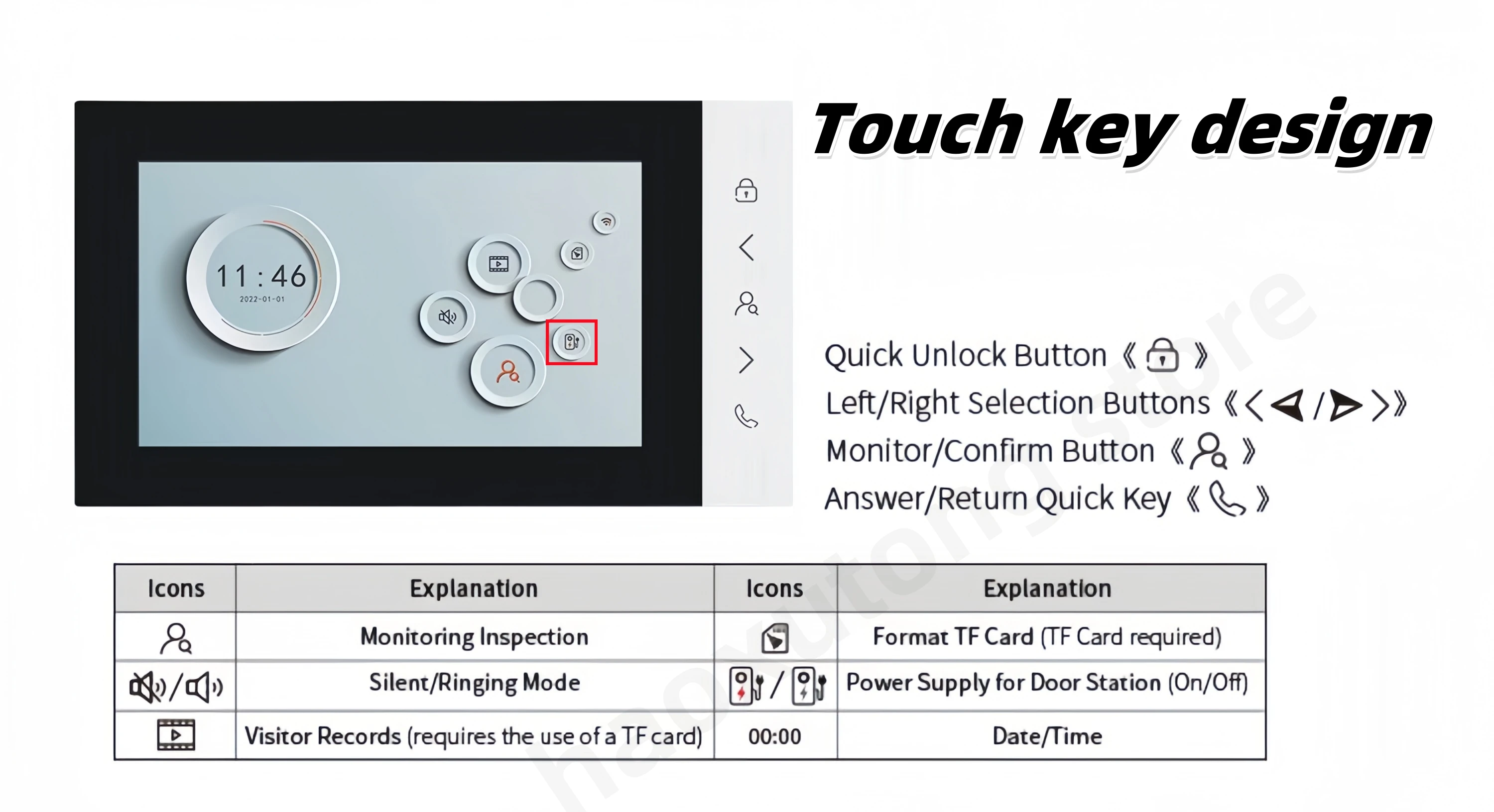 5. Functions: Photo, video, unlock, delay lock, adjust brightness, contrast, color