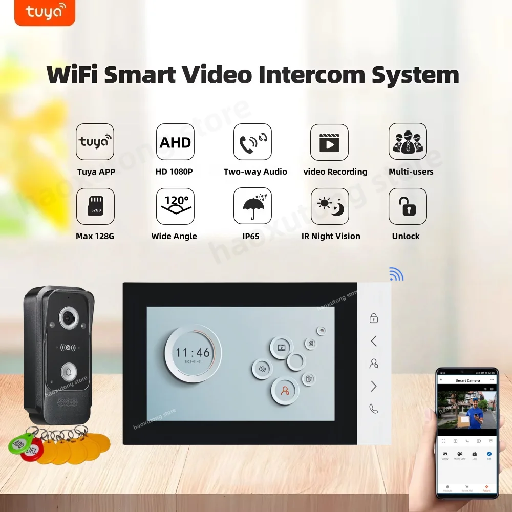 7Inch Tuya Smart Video Door Entry Phone Intercom System RFID Card 1080P Wireless Wifi Outdoor Doorbell Camera for Home Apartment