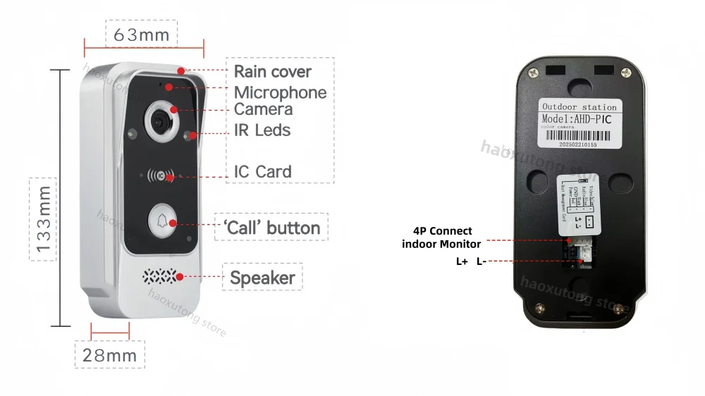 IP65 waterproof design,work stable in rainy,cloudy,cold and snow day. Built with 1080p HD camera, anti-oxidation aluminium alloy front panel,Rainproof, Dustproof,and Anti-vandal. IR LED for better night vision.
