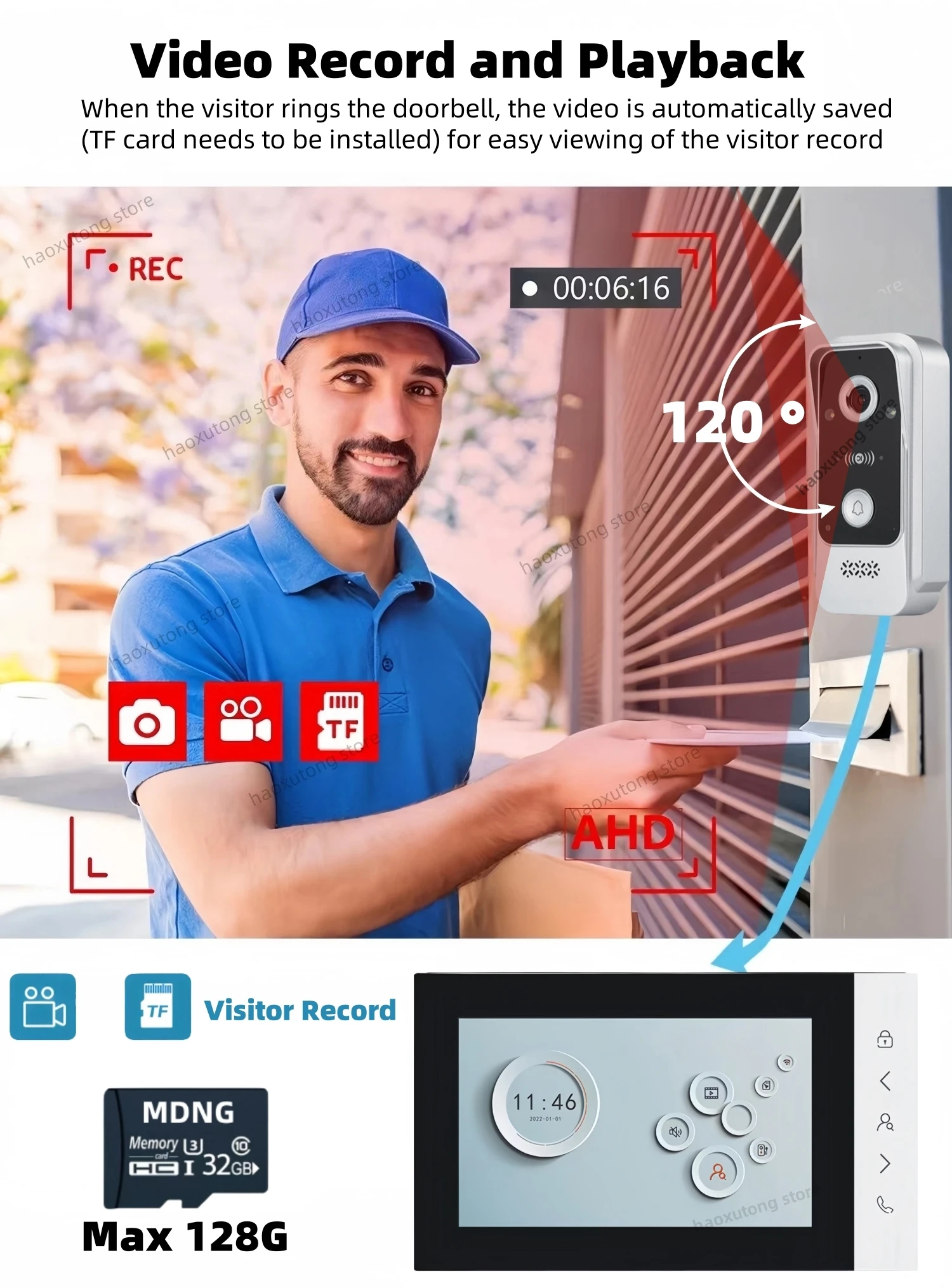 7Inch Tuya Smart Video Door Entry Phone Intercom System RFID Card 1080P Wireless Wifi Outdoor Doorbell Camera for Home Apartment