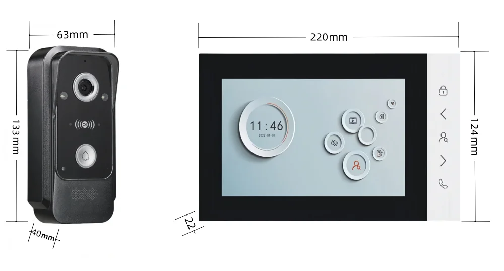 5. Functions: Photo, video, unlock, delay lock, adjust brightness, contrast, color