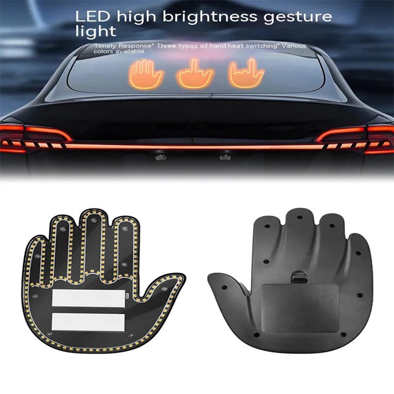 Luz engraçada do dedo do carro com controle remoto, Sinais de Corrida Rodoviária, Luz do Gesto Médio, Auto Amber Warning Brake Light